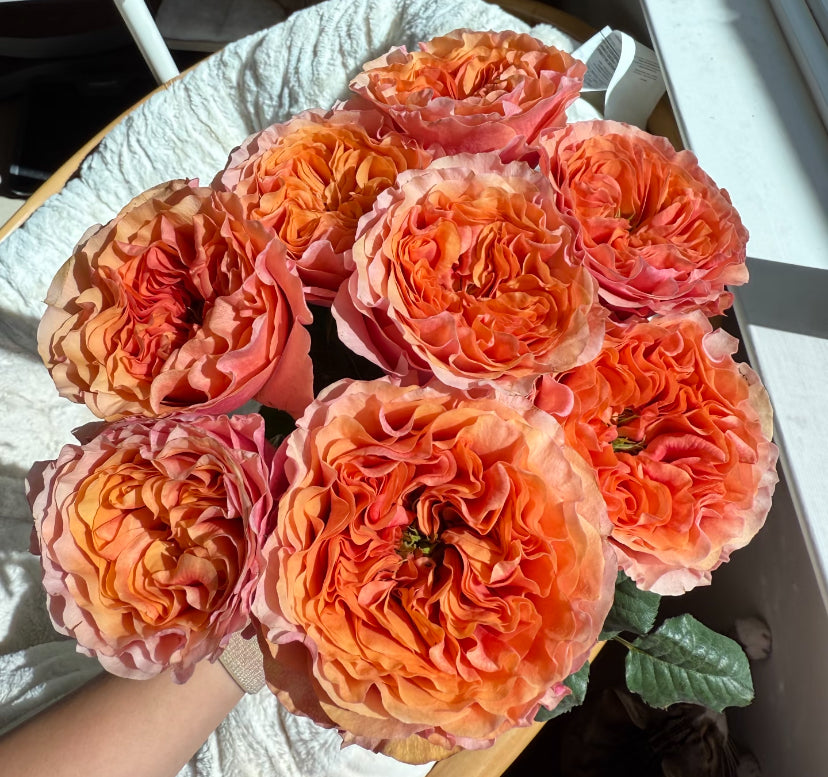 This is the one gallon pot. You can repot it in 2-3 gallon pot when you see many white roots appear the bottom of pots. There are several kinds of DA rose preorders , like Olive, Boscobel, Gable Oak, Jubilee celebrations ,lady of shalott, Benjamin Britten,Ambridge,poet wife and so on. DA weeding cutting rose Juliet ,Constance, Edith, Tess and so on,also provides And several kinds of France rose Asia rose Germany,Duntch cutting rose .They all in stock now. Bloom repeatedly. Strong disease resistance. Own root and drafted root depends on different types. Pick up on Northyork.Please ask us for more info. Growing zone 5-11.