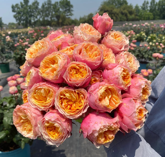 This is the one gallon pot. You can repot it in 2-3 gallon pot when you see many white roots appear the bottom of pots. There are several kinds of DA rose preorders , like Olive, Boscobel, Gable Oak, Jubilee celebrations ,lady of shalott, Benjamin Britten,Ambridge,poet wife and so on. DA weeding cutting rose Juliet ,Constance, Edith, Tess and so on,also provides And several kinds of France rose Asia rose Germany,Duntch cutting rose .They all in stock now. Bloom repeatedly. Strong disease resistance. Own root and grafteded root depends on different types. Pick up on Northyork.Please ask us for more info. Growing zone 5-11.
