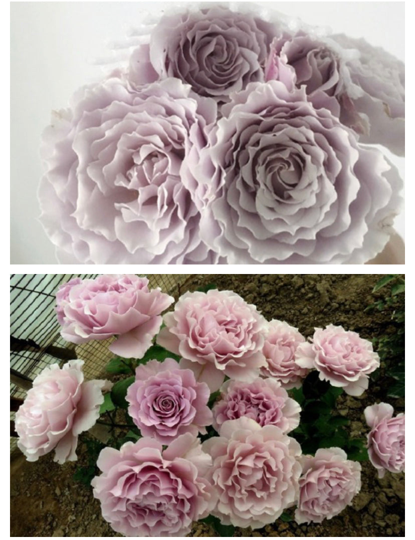 Japanese rose libellula, purple colour big flowers . Small shrub many flowers.